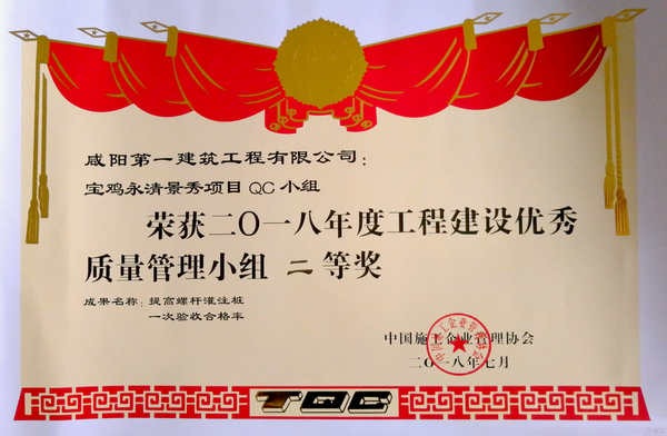 2018年獲國(guó)家工程建設(shè)優(yōu)秀質(zhì)量管理小組二等獎(jiǎng)