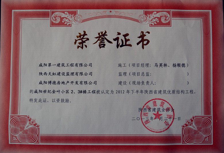 世紀金葉小區(qū)位于西咸新區(qū)灃西新城核心商圈,本公司負責(zé)建設(shè)該小區(qū)2號、3號住宅樓。項目層高27層,建筑面積3萬平方米。該項目建設(shè)過程中,先后獲得陜西省優(yōu)質(zhì)結(jié)構(gòu)示范工程、陜西省省級文明工地稱號,并有多項成果被授予陜西省建設(shè)工程質(zhì)量管理優(yōu)秀QC小組成果一等獎。